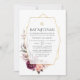 Boho burgundy rouge et rose vif invitation à la bat mitzvah florale avec des pivoines et des roses avec cadre géométrique or personnalisable selon vos spécificités d'événement.