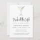 Martini Cocktail Illustration Moderne Minimaliste Couples Invitation Wedding shower avec une illustration amusante de cocktail et un motif d'olive sur le dos.