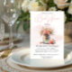 Cette invitation à la douche nuptiale présente une esthétique douce et romantique avec un arrière - plan de style aquarelle et un délicat bouquet de fleurs roses et pêche arrangé dans une jarre de maçon attachée à un ruban. Le design allie élégance et charme rustique, parfait pour une célébration chaleureuse. La mise en page du texte utilise un mélange gracieux de polices : cursive fluide pour le titre de l’événement et le nom de l’honoraire, associée à des polices serif classiques pour les détails, créant une hiérarchie visuelle équilibrée et raffinée. L'ensemble se sent chaleureux, festif et bien composé.