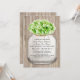 Faire-part de mariage rustique et tendance, avec jarre de maçon avec de belles hydrangées vertes en pleine floraison sur arrière - plan en bois de grange. Entièrement personnalisable, cliquez sur Customiser le bouton pour modifier la taille, la couleur et le style de la police. Vous pouvez également supprimer, réorganiser ou ajouter du texte en fonction de vos besoins.