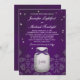 Une magnifique faire-part de mariage de bocal de luciole mauve et prune qui semble briller. Ajoutez les initiales et ou le monogramme de la mariée et du marié dans le bocal avec un motif imprimé en ruban. Une subtile bordure en dentelle antique damassée vintage complète ce design rustique mais élégant avec des lucioles enchanteresses à l'intérieur et à l'extérieur du bocal. Ces invitations sont magnifiques pour un mariage à thème nocturne, baryade, ferme ou champêtre. Oeuvre © Chrissy H. Studios, LLC.Tous droits réservés.