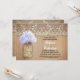 Jolie invitation à la douche nuptiale rustique avec pot de mason avec fleur d'hydrangée bleu clair. Invitation parfait pour la douche nuptiale avec dentelle vintage et des accents de bois en détresse.