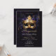 Un modèle simple, moderne, élégant et chic 50ème anniversaire invitation à la fête avec un thème de mascarade, avec un masque de mascarade en or aux accents violet et or, typographie moderne et un arrière - plan moody noir et violet, ainsi qu'une calligraphie élégante. Un beau choix pour une fête du cinquantième anniversaire à la Nouvelle-Orléans, le Bayou ou avec un thème Mardi Gras, Nola, carnaval, mascarade.