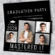 Diplôme de maîtrise moderne faire-part de diplôme noir et invitation de fête avec un collage photo de 4 images, "Mastered It" écrit en grandes lettres majuscules blanches et son année de classe, nom et l'école ou l'université en simple typographie blanche. Au contraire, ajoutez les détails de la fête principale.