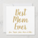 Best Mom Ever texte personnalisé de script personnalisé personnalisé. Texte en faux or entièrement personnalisable, arrière - plan blanc. Grand cadeau pour la Fête des Mères vous pouvez customiser le texte du bas avec les noms des membres de votre famille, enfants, enfants, etc