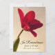 Les invités Invitations se souviendront de votre être cher un an après leur passage avec l'élégante invitation commémorative de l'anniversaire de la mort de la Fleur Rouge Tulip. Cette élégante fête fleurie personnalisée de hommage à la vie invitation mémorial présente une jolie photo florale peinte numériquement d'une fleur de tulipe rouge fleurie sur la tige avec un arrière - plan beige. Personnalisez-le avec le nom du défunt et les dates de naissance et de décès. Disponible sous forme d'invitation imprimée à l'envoi et/ou en téléchargement numérique pour un partage numériquement en ligne facile. Idéal pour une visite ou une idée pour un événement au printemps en mars, avril ou mai.