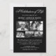 Célébrez la vie significative de vos proches avec nos élégantes invitations personnalisées à des funérailles commémoratives. Doté d'un arrière - plan noir élégant et d'une célébration moderne du modèle de la vie, il donne une touche chaleureuse au partage de leur mémoire. Le design intègre gracieusement cinq photos sélectionnées de votre être aimé, créant un hommage délicat mais puissant à leur remarquable voyage. Commémorez les moments inoubliables de la vie avec nous.