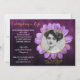 Joli design floral avec une belle marguerite simple violette contre un arrière - plan violet foncé. Un cadre doré simple et élégant attend votre photo préférée. Un service commémoratif personnalisé et merveilleux. Remplacez l'exemple de photo et de texte du portrait par le vôtre. Idéal pour commémorer un défunt amoureux qui aimait les fleurs, le jardinage, la nature, la beauté de la vie...