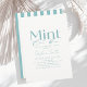 Cette invitation à la douche nuptiale minimaliste et moderne "Mint to be" présente des lettres typographiques en vert menthe/bleu sur un arrière - plan blanc. L'envers comporte des rayures vert menthe. Personnalisez-le selon vos besoins. Vous pouvez trouver des produits correspondants dans mon magasin.