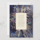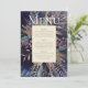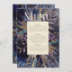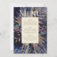 Menu romantique bouquet peint en bleu, aux tons turquoises, violet et sombre. Il s'agit d'un design recto verso, avec un menu sur un côté et un numéro de table à l'arrière, avec de l'espace pour les noms de clients. Vous pourrez également opter pour un menu de boissons ou pour un service à l'arrière. Voir la suite complète correspondante ici https://www.zazzle.com/collections/romantic_gilded_bouquet-119193137841903098