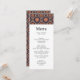 Carte de menu avec un motif répétitif d'éléments décoratifs ornés en forme de fleurs, d'étoiles et de soleil.