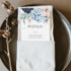 Affichez votre délicieux menu sur ces jolies cartes - taille parfaite à placer sur chaque assiette! Ce design présente une jolie police de caractères et un beau bouquet de fleurs marines. Modifiez facilement les produits alimentaires !