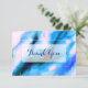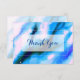 Un carte de remerciements pour les invités de votre fête. Image arrière - plan cool d'un design d'aquarelle cosmique. Le bleu, le rose et le violet mélangent pour créer un motif abstrait en marbre. Le dos a un message personnalisé avec un petit coeur rose. Le message peut être modifié ou laissé tel quel.
