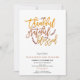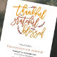 Mots inspirants Thankful, Grateful, Blessed dans un script élégant dans les couleurs automnales sont à la moitié supérieure, et les détails sont ci-dessous contre un arrière - plan blanc. Personnalisez facilement le texte avec vos détails.