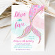 Cette adorable invitation présente une queue de sirène colorée avec des motifs de parties scintillant en faux or.