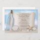 Invitations de douche de lune de miel de plage, exclusivement conçu par Artistly Invited, avec une illustration d'une bouteille en verre avec un message en papier abîmé dans le sable, avec des coquillages, des dollars de sable, et une étoile de mer. Votre message personnalisé à partir d'une bouteille de douche lune de miel détails sont imprimés sur mesure en brun sur l'illustration papier. Ce sont les invitations parfaites pour vos fêtes de lune de miel sur la plage.