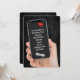 Une main tenant un smartphone avec un diplôme de fin d'études de 2025 sur un arrière - plan en cuir noir pour une fête de remise des diplômes. Tout le texte est modifiable. Le diplôme et le grand casquette peuvent être supprimés.