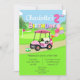 Fêtez le premier anniversaire d'une petite fille spéciale avec cette charmante invitation au golf ! Doté d'une adorable voiturette de golf à pois rose garée à côté d'un putting green, ce design sucré est chargé de détails ludiques, d'un gâteau d'anniversaire festif, et d'un tas de ballons d'hélium lumineux, dont un grand ballon numéro 2. Parfait pour une famille passionnée de golf ou un thème unique de deuxième anniversaire, cette invitation donne le ton pour une journée amusante sur et hors du vert.