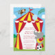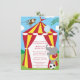 L'invitation de fête d'anniversaire a un thème mignon de cirque qui conviendrait à une fête d'anniversaire pour une fille ou un garçon. Il y a un éléphant mignon équilibrant sur un ballon de football au fond avec une oscillation de singe d'une vigne au dessus. Au milieu, il y a une tente de cirque rouge et jaune de rayures. Vous pouvez customiser toute les information de fête d'anniversaire au milieu de l'invitation. Graphiques par babystardesign.com
