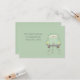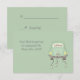 C'est une carte-réponse de mariage mignonne, légère et moderne. Elle présente une voiture compacte verte et grise avec des boîtes de conserve accrochées à l'arrière et un panneau "Just Married" sur la lunette arrière. Votre texte personnalisé est imprimé en gris clair sur un côté. L'image et le texte sont placés sur un fond vert menthe. Le verso de la carte est également vert menthe, avec votre texte personnalisé. Cette carte correspond aux "Faire-part de mariage vert menthe Modern Forever Love" et à d'autres produits de la collection "Special Day Wedding". *Les illustrations utilisées dans ce design sont la propriété d'Encore Software, Inc., qui en autorise l'utilisation à ses licenciés.