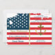 Le drapeau et l'or patriotiques ancrent l'ancre nautique métallique de retraite de partie d'invitations d'or militaire de Faux du côté droit. L'arrière - plan est bannière étoilée rustique et sale de drapeau des Etats-Unis. Lit la "retraite de marine" dans le lettrage de couleur d'or. Au-dessous de lui lit "svp nous joignent en honorant 25 ans de service militaire par" dans le bleu. (Customisé années de service.) Taux et nom personnalisés ci-dessous en manuscrit. L'information de partie de retraite du côté droit dans le bleu. Le ruban vertical de sembler d'or au centre sépare les deux moitiés. Le dos a l'assortiment, l'arrière - plan de couleur d'or massif et les frontières métalliques de ruban de regard d'or. Note : Toutes les images sont imprimées. Métal non réel. Invitations sophistiquées et militaires de retraite de partie. Cliquez sur l'option de personnaliser pour changer des couleurs des textes, la taille, et des styles de police. Visitez notre magasin en ligne de Zazzle.com/angela65 pour les invitations plus personnalisées et plus militaires.