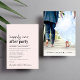 Invitation minimale moderne rose clair pour annonce de mariage et réception. Le recto présente "Fête pour toujours heureux" dans un mélange d'écriture contemporaine et de typographie tendance et audacieuse. Personnalisez votre message et votre invitation et ajoutez vos noms dans une écriture semblable à une signature. Le verso présente votre photo de mariage, vos prénoms et la date du mariage.