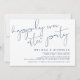 Ceci est le carton d'invitation pour une fête de mariage en fuite, avec un design de script Bleu Nuit minimaliste.