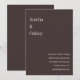 This modern wedding invitation features a rich brown background with clean serif typography for a refined, editorial look. The minimalist layout highlights your names while keeping the overall design simple and elevated. Perfect for fall weddings, city venues, or couples who love an understated aesthetic. A timeless option for a contemporary celebration.