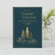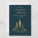 This piece captures a moment of serene night-time beauty. Three shimmering gold pine tree silhouettes stand upon a gentle hill, set against a deep, velvety midnight navy background. Delicate gold botanical sprig and tiny wildflower blossom cluster at the base of the trees, while a thin, sophisticated gold frame provides a clean, modern border. The sharp contrast between the rich dark backdrop and the polished metallic gold creates a striking, high-end look. As a wedding invitation, this design is an exquisite choice for an evening winter ceremony, a celestial-themed event, or an elegant mountain union. It sets a peaceful and sophisticated tone, inviting your loved ones to a celebration under the stars.