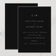 A minimalist black wedding invitation featuring a refined monogram and clean white typography. The modern layout and centered text create an elegant, timeless look—perfect for couples who love understated sophistication. Ideal for formal or contemporary weddings, this invitation pairs classic simplicity with modern style.