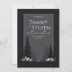 Capture the serene beauty of a Scandinavian landscape with this striking minimalist design. A deep, matte black background provides a dramatic canvas for the crisp silhouettes of towering pine trees. At the base, a delicate cluster of white daisy-like wildflowers and subtle pink botanical sprigs add a touch of organic softness to the modern aesthetic. Framed by a thin, clean white border, this composition exudes a sophisticated and peaceful Nordic vibe, perfect for couples who appreciate bold, high-contrast nature scenes. This is a wedding invitation designed for minimalist woodland ceremonies, modern monochrome events, or serene winter celebrations.