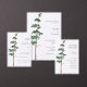 This minimalist wedding invitation features a watercolor spruce tree against a natural background.