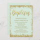 Invitations de baptême chic vert menthe et or fausse parties scintillant. Les dessins sont des illustrations/graphiques à papier plat - PAS VRAIMENT PARTIES SCINTILLANT OR.