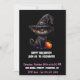 Carte de Halloween avec Minuit Le Chat Noir Sorcier