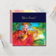 Personnage coloré, fantaisiste et vibrant de masquerade vénitienne. Une belle femme blonde sophistiquée est assise avec une rose rouge et un masque à plumes à la main, avec des tissus dorés et fuchsia scintillants d'un costume de bal masqué baroque avec des plumes et un chien. Peinture à l'aquarelle avec des couleurs vives en jaune, bleu, rose, vert, paillettes dorées et feuille d'argent, inspirée des personnages de la Comédie de l'Art (Commedia dell'Arte), du Carnaval de Venise et des masques à plumes vénitiens. Ce design cool et artistique est parfait pour les mariages, les cérémonies de noces, les enterrements de vie de jeune fille, les anniversaires de 16 ans, les fêtes de quinceañera, les soirées costumées d'Halloween, les bals costum