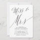 Jolie invitation à la douche nuptiale Miss to Mrs avec un superbe script de calligraphie moderne sur un arrière - plan blanc pour une élégance simple.