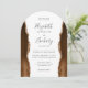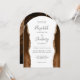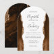 Cette élégante faire-part de mariage moderne en forme d'arc présente des bordures latérales d'aquarelle marron mocha ornées d'une parties scintillant en faux or. Le texte personnalisable combine écriture manuscrite grise au fusain, cuivre et polices italiques sur un arrière - plan blanc. L'envers est assorti d'un design d'agate marron mocha et or.