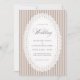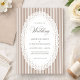 Elegant wedding invitation featuring classic mocha brown French stripes and a delicate scalloped lace doily-inspired frame for a refined vintage look. The soft neutral mocha palette creates a timeless, romantic aesthetic that pairs beautifully with farmhouse weddings, classic elegant celebrations, and modern vintage wedding themes. Clean, sophisticated, and effortlessly chic, this lace-inspired design adds graceful charm to your wedding stationery suite.