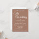Style simple, faire-part de mariage qui présente un arrière - plan de couleur mocha marron tendance ainsi que les futurs noms de mariée et de mariée et la date de l'événement, l'heure, l'emplacement et le registre imprimé en blanc, stylisé. Personnalisez votre faire-part de mariage en remplaçant l'info par la vôtre. Sélectionnez le style et la quantité de papier d'invitation. Conçu pour coordonner avec notre collection Mocha Mousse Simple Style Mariage.