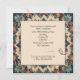 Un motif de courtepointe géométrique vibrant rayonne à partir du centre, créant un design de mandala complexe avec diverses couleurs, y compris des nuances de vert sarcelle, de brun rouille et de beige pour une fête d'anniversaire de 50 ans.