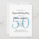 Personnalisé, invitations à la fête d'anniversaire surprise pour lui. Faites-en une partie "surprise", ou n'importe quel type en ajoutant votre propre libellé aux zones modèles. Un chiffre bleu est le modèle arrière - plan pour son âge sur des cartes blanches avec du texte noir. Invitation abordable aux couleurs masculines et texte pour le célébrer. Les coins encochés sont une mise à niveau optionnelle.