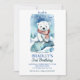 Fête d'anniversaire d'hiver de l'ours polaire modifiable invitation modèle instantanée téléchargement numérique, mignon ours polaire portant foulard et assis sur la glace roche enfants invitation fête d'anniversaire