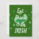 modèle vintage de la fête de la St Patrick. Design de fierté irlandaise avec grand coeur vert et porte-bonheur 4 feuilles clovers aka shamrock. Elégant design amusant avec le script de brosse grungy handlettering. Mangez une boisson et soyez irlandais. Invitations de la fête de la St Paddys, 5 x 7 pouces. Impression recto verso.