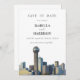 Cette invitation à save the date imprimable DIY présente une peinture aquarelle de la skyline de la ville d'Austin à Dallas. Utilisez ce modèle pour modifier tout le libellé, la police, la couleur de la police et la couleur de fond pour qu'ils correspondent au style de votre événement. Ajoutez facilement votre propre photo ou vos propres graphiques à ce modèle.
