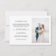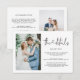 Élégante et simple carte de photo recto-verso de mariage avec un texte de typographie écrit à la main avec un cœur entre les mots. Carte d'insertion de modèle d'informations sur les détails du mariage. Un modèle fournit plusieurs lignes pour vos informations détaillées, y compris la réception, l'hébergement et le site Web. Ce script décontracté et l'espace blanc donnent une sensation simple et minimaliste.
