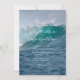 Modèle d'invitation de mariage sur la côte avec une grande image de fond de vague océanique. Votre texte est ajouté en trois sections. Le style de police imprimé est utilisé pour le texte « vous êtes priés d'assister » en haut, ainsi que pour le paragraphe qui contiendra toutes les informations sur la cérémonie et la réception. Le modèle pour les noms des mariés est un script manuscrit moderne. Les noms complets ou les prénoms uniquement peuvent être utilisés. L'eau bleue profonde et les sommets turquoise des vagues qui se brisent sont les couleurs de la nature qui font une invitation passionnante pour les couples qui aiment l'océan. Le verso est de l'écume de mer bleue.