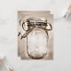 Voici une invitation rustique de campagne unique pour un événement champêtre. Le design du pot Mason est sur les deux côtés. Utilisez simplement le bouton Personnaliser pour ajouter votre propre texte personnalisé à ce design. Peut être utilisé pour une douche de mariée, une invitation de mariage, des informations de réception, une baby shower champêtre, une fête d'anniversaire ou tout type d'événement de style vintage utilisant des pots Mason ou des bocaux à conserve dans la décoration.