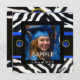 Invitation MODÈLE PHOTO de monogramme BLEU BLEU BLACK ZEBRA F