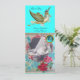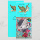 Design floral élégant et amusant de style vintage avec un bébé et cigogne volant parmi les belles roses, roses rouges, fleurs de printemps bleu turquoise et une pierre à gemme 3D brillante et vibrante par Bulgan Lumini.