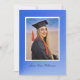 A unique card with a modern blue, gradient color scheme. Similar blue background on the back of the card containing details. Suitable for a high school or college graduation. The photo and all text are easily changed with the template. Selecting “Personalize this design” offers you several edit options to easily change the text (wording, plus type font, color, size, position) and to edit the design elements. You may also want to scroll down to the section “Transfer design to a product” for a few suggestions about other items this design can be used on.
